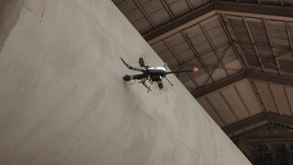 Even though UT can deliver high-fidelity data, asset owners often hesitate to run frequent tests as they require contact access to the surface. For large industrial assets, this means commissioning a cherry-picker or building scaffolding. Unless you opt to use an industrial inspection drone.
