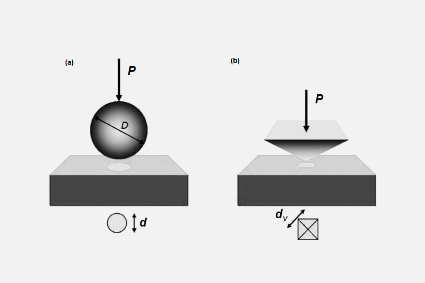 Illustration of hardness tests with different types of indenters. Source: MDPI